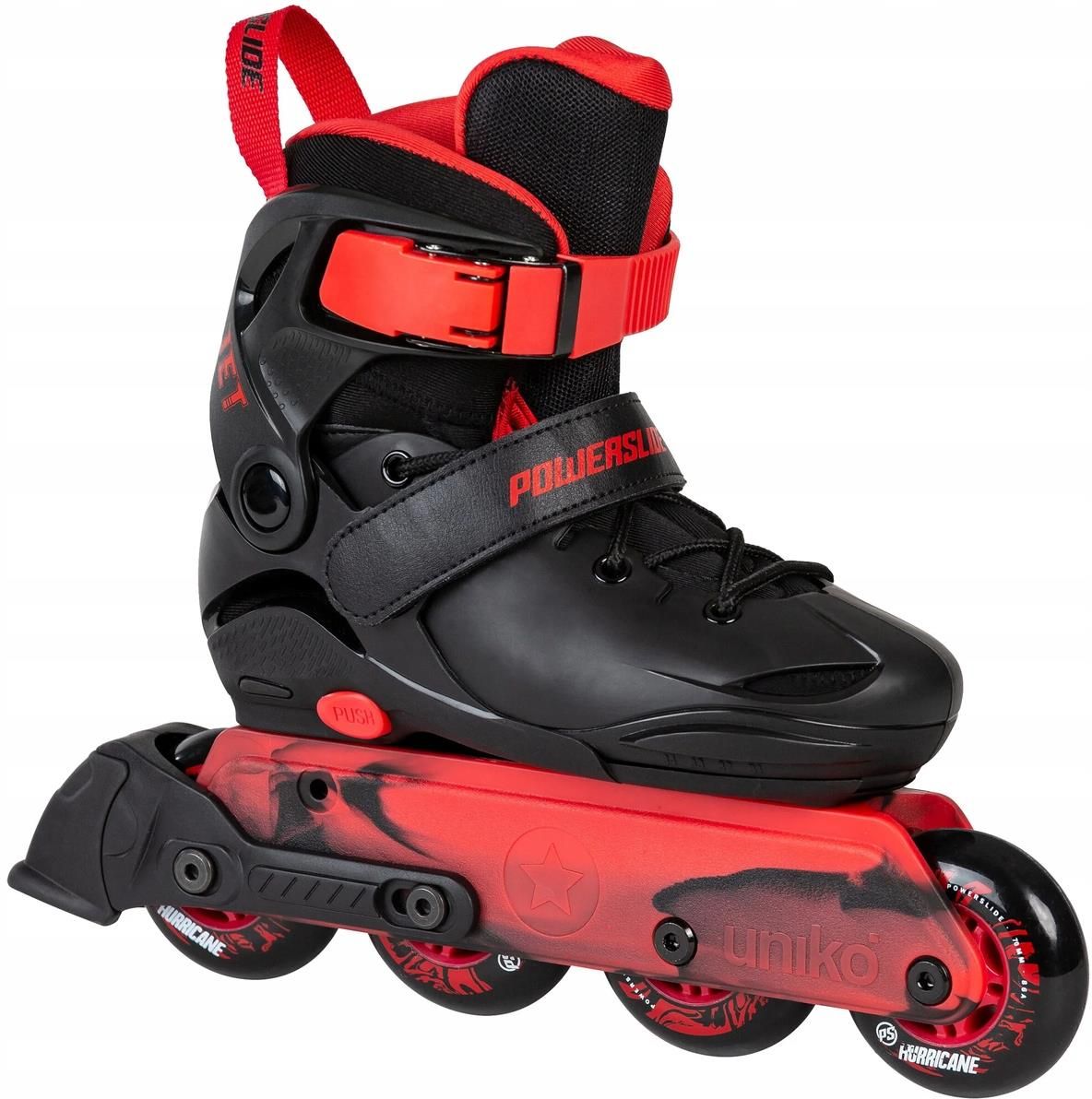 Rolki Powerslide Jet Black 31-34 Powerslide Rolki Powerslide Jet Black to rolki dla dzieci, które wyróżnia jakość i doskonałe właściwości trakcji. Niezawodne i przyjemne rolki freeskie z regulacją rozmiaru dla dzieci, wyposażone w łożyska ABEC 7. Rolki Powerslide Jet Black to doskonały model rolek hardboot na poziomie początkującym, zaprojektowany specjalnie dla dzieci. Wytrzymały i regulowany. Jest to idealny model rolek na każdą okazję dla aktywnych dzieci. Przejażdżki po okolicy, jazda wraz z rodziną czy granie w hokeja z przyjaciółmi - dzięki Jet Black dzieci mogą w pełni cieszyć się jazdą na rolkach. Jet Black występuje w tradycyjnym układzie na 4 koła, który jest stabilny i nisko położony. Ten model pełen funkcji jest również regulowany pod względem rozmiaru. Dzieci szybko rosną, a Powerslide Jet Black może być dostosowany do ich wzrostu. Możesz mieć pewność, że Twoje dziecko będzie miało wysokiej jakości rolki, które idealnie będą pasować przez kolejne sezony. Rolki są wyposażone w wysokiej jakości komponenty, w tym koła Powerslide Hurricane i łożyska WICKED ABEC 7, zapewniając młodym łyżwiarzom płynną, szybką jazdę, która wywoła uśmiech na ich twarzach. Cechy Rolki Powerslide Jet Black: But zewnętrzny: Hardboot; 129/145/165mm But wewnętrzny: But wewnętrzny Jet z wyściółką EVA i rozszerzalną częścią palcową Zapięcie: Potrójna stabilizacja: Górna klamra, rzep pod kątem 45° oraz klasyczne wiązanie Szyna: Powerslilde Uniko, glass-fiber, 27-30 = 8.1" (207mm) / 31-34 = 8.6" (219mm) / 35-38 = 9.1" (231mm); 4x62mm / 4x 70mm / 4x72mm Kółka: Huragan Powerslide; 62/70/72mm / 83A; HR = wysokie odbicie, komfort jazdy Łożyska: Wicked; ABEC 7; chrome steel balls; carbon steel Rozmiar kółka: 62mm|70mm|72mm Przeznaczenie: Urban|Street Twardość kółek: 83A Płeć: Juniorskie|Dla dzieci Kolor: czerwony|czarny Rolki Powerslide Jet Black to rolki dla dzieci, które wyróżnia jakość i doskonałe właściwości trakcji. Niezawodne i przyjemne rolki freeskie z regulacją rozmiaru dla dzieci, wyposażone w łożyska ABEC 7.