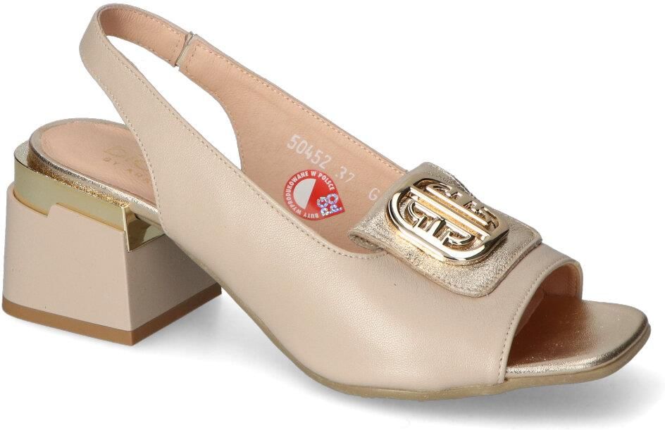 Eleganckie, wygodne sandały damskie marki Arka: - cholewka wykonana została z wysokiej klasy skóry naturalnej licowej - wnętrze zostało pokryte skórą naturalną, aby zapewnić komfort podczas użytkowania - wkładka wewnętrzna wykonana została ze skóry naturalnej - sprzączka ułatwia zakładanie i dopasowanie obuwia do stopy - obcas o wys. 7,5 cm zapewnia odpowiednią stabilizację - beżowy kolor z dodatkiem złota oraz modny fason tworzą niepowtarzalny efekt!