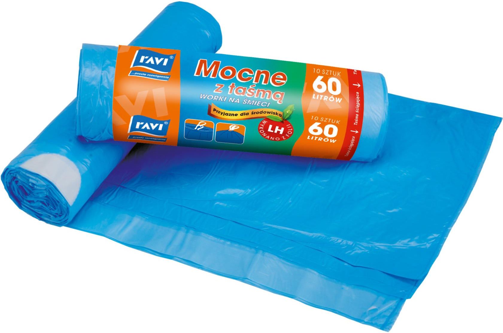 Worki Na Śmieci 60L Z Taśmą 10szt Niebieskie Ravi Maków Mazowiecki