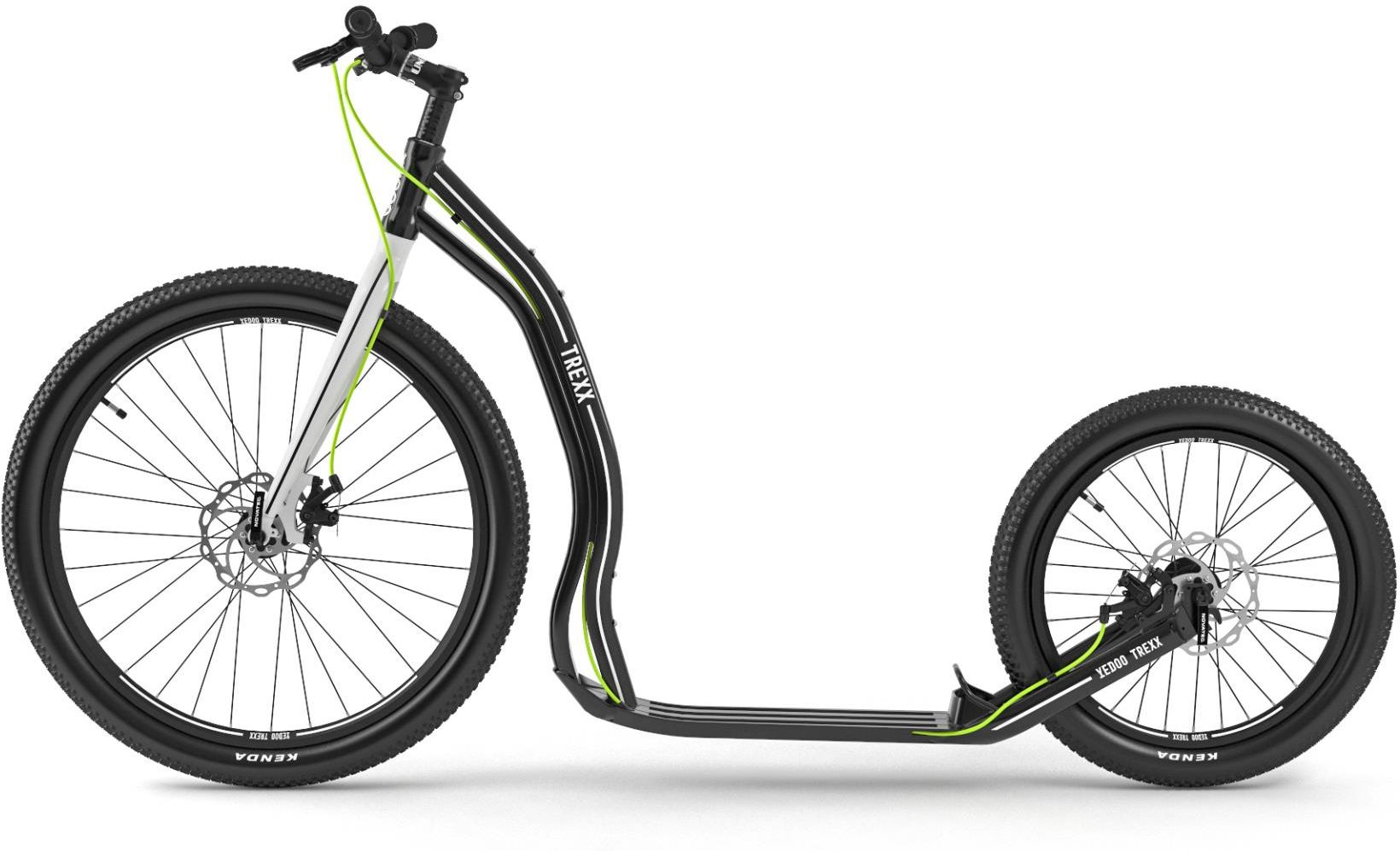 Asfalt, szuter, góry, las czy kocie łby? Dla hulajnogi Yedoo Trexx Disc to żaden problem! Poznaj hulajnogę, która przeniesie Twoją jazdę na nowy poziom. Oryginalnie zaprojektowana aluminiowa rama zapewnia nie tylko niewiarygodną lekkość, ale także wyjątkową wytrzymałość. Dzięki aerodynamicznemu kształtowi poczujesz się, jakbyś mknął z wiatrem, osiągając prędkości, o których inni mogą tylko marzyć. Idealna dla tych, którzy kochają adrenalinę i chcą być zawsze o krok przed innymi. Wyposażona w szeroką, regulowaną kierownicę, która dostosuje się do Twoich potrzeb, Yedoo Trexx Disc gwarantuje maksymalny komfort. Ergonomiczne chwyty z antypoślizgowym rastrem sprawią, że Twoje dłonie zawsze będą w pełnym komforcie, a lekkie dźwignie hamulcowe zapewnią pełną kontrolę nad jazdą. Niezależnie od tego, czy przemierzasz miejskie ulice, czy zjeżdżasz z górskich ścieżek, będziesz mieć pełną kontrolę nad każdą sytuacją. Zapomnij o nierównościach! Lekko uniesiony podest z przodu pozwala płynnie pokonywać przeszkody, a niżej położony i cienki podest oszczędza Twoją energię i stojącą nogę. Antypoślizgowa powierzchnia i praktyczna podpórka z tyłu podestu ułatwiają manewrowanie i zwiększają bezpieczeństwo. A kiedy potrzebujesz się zatrzymać, możesz polegać na hamulcach tarczowych Tektro MD-M300 Aries, które nie zawiodą Cię nawet w deszczu, błocie czy śniegu. Wejdź na pokład Yedoo Trexx Disc i przygotuj się na jazdę pełną zabawy i przygód! Ta hulajnoga to nie tylko sprzęt – to styl życia dla tych, którzy cenią sobie szybkość, komfort i niezależność. Odkryj na nowo radość z jazdy i dołącz do grona zadowolonych użytkowników Yedoo Trexx Disc. Twoja przygoda czeka – czy jesteś gotowy, by ją rozpocząć? Opis techniczny rama Stop Yedoo II. widelec Yedoo alloy II. mostek UNO alloy 3D oversize stery Stop NECO 1 1/8" semi AHEAD kierownica UNO stop DB (jaskółka) oversize gripy Guma antypoślizgowa XHH dźwignie hamulca TEKTRO ML 520 stop hamulce 2x tarczowe TEKTRO MD-M300 ARIES koła 26"/20" obręcze Stop HJC z podwójną ścianką piasty Tarcza NOVATEC szerokość piasty (przód/tył) 100/100 mm łożyska przemysłowe dźwignie szybkiego zwalniania (przód/tył) tak/tak opony (przód/tył) KENDA Small Block Eight (60TPI, osłona kevlarowa) maksymalne ciśnienie (przód/tył) 4,6 bara / 4,6 bara przygotowanie do uchwytu na butelkę 2x (2x gwint M5, skok 64 mm) elementy odblaskowe na przednim widelcu waga 9,1 kg długość 179 cm podnóżek 40 cm wysokość kierownicy 93 - 100 cm szerokość kierownicy 64 cm prześwit (pozycja dolna/górna) 6,2 cm wysokość podnóżka nad podłożem (pozycja dolna/górna) 8,9 cm przestrzeń dla kierowcy 68 cm minimalny wzrost hulajnogisty 150 cm nośność 150 kg