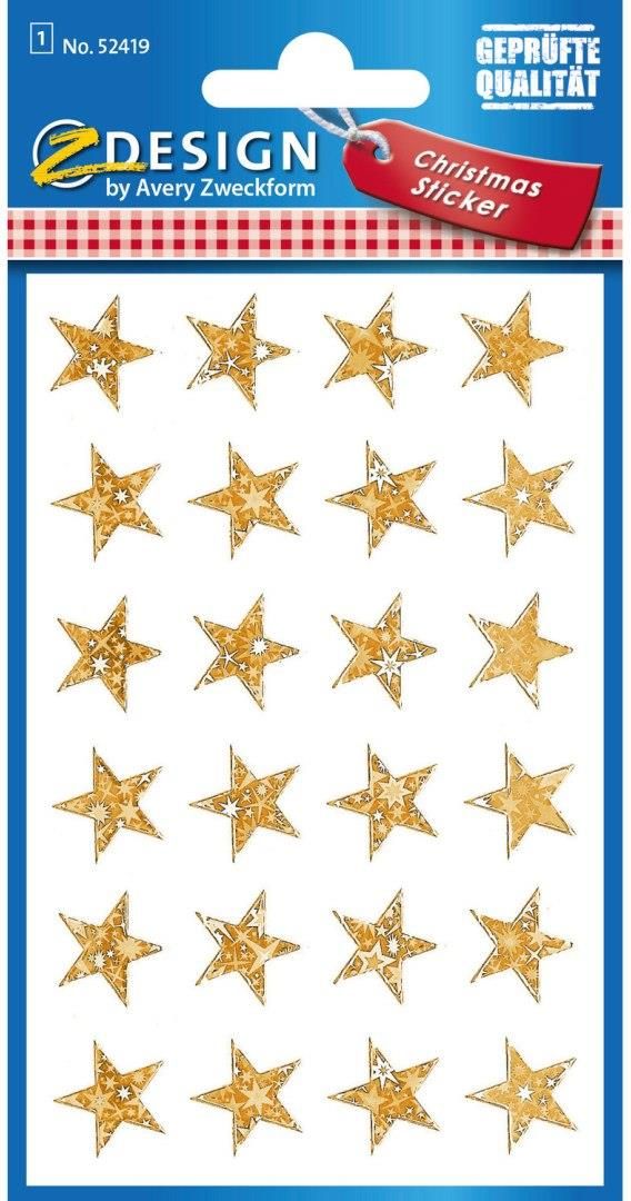 Naklejki Z-Design foliowe - zlote gwiazdki 52419 AVERY ZWECKFORM Wśród naklejek Z-Design z kategorii ``GWIAZDKA`` mozna znaleLc wiele ciekawych i oryginalnych motywów. Spośród róznorodnych, kolorowych i modnych wzorów kazdy znajdzie coś dla siebie. Naklejki idealnie nadają sie do ozdabiania kartek z zyczeniami, prezentów, przygotowywania ozdób oraz zapewniania świątecznej atmosfery w domu.
