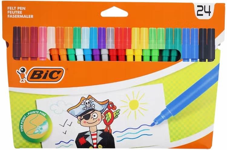 Kolorowe flamastry BIC z cienką końcówką 24 sztuki 24 różne kolory Pisaki z cienką końcówką W Waszym domu nie ma już pewnie ani jednej pustej kartki: wszystkie są pomalowane flamastrami. Niezależnie od tego, czy rysujesz samodzielnie, czy kolorujesz obrazek, zawsze znajdziesz właściwy kolor. …