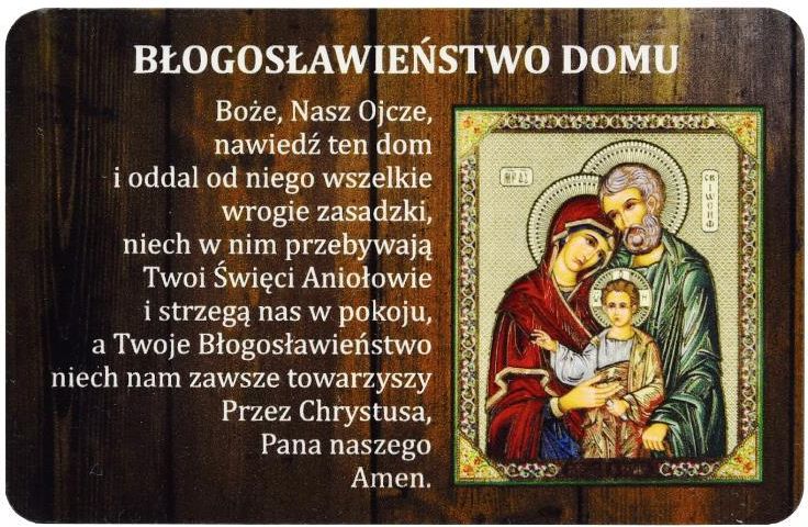 Magnes z modlitwą: Boże, nasz Ojcze, nawiedź ten dom i oddal od niego wszelkie wrogie zasadzki, niech w nim przebywają Twoi święci Aniołowie i strzegą nas w pokoju, a Twoje błogosławieństwo niech nam zawsze towarzyszy. Przez Chrystusa, Pana naszego. Amen