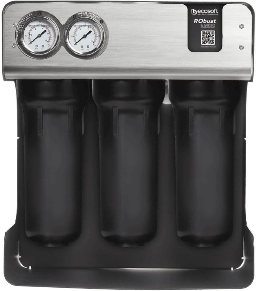 Ecosoft RObust 1500 – Profesjonalny filtr odwróconej osmozy z przepływem bezpośrednim, zaprojektowany do bezawaryjnej pracy 20 godzin dziennie. Ecosoft RObust 1500 to wysokowydajny, bez-zbiornikowy system odwróconej osmozy (Direct Flow), który zapewnia stały dostęp do czystej, bezpiecznej i smacznej wody — idealny do domu, kawiarni, biura, hotelu czy gabinetu. ⭐ Najważniejsze zalety ✔ Przepływ bezpośredni (Direct Flow) – filtr nie wymaga zbiornika, więc woda jest dostępna ciągle i bez opóźnień. ✔ Duża wydajność – produkuje 90–100 l czystej wody na godzinę — nawet do ~1500 l dziennie w trybie ciągłym. ✔ Ekonomiczna filtracja – wysoki wskaźnik odzysku wody 60–65%, mniejsze marnowanie i niższe koszty eksploatacji. ✔ Czterostopniowy system filtracji – skutecznie usuwa zanieczyszczenia mechaniczne, chlor, substancje organiczne, metale ciężkie, bakterie i wirusy. ✔ Solidna konstrukcja i manometry – wbudowane wskaźniki ciśnienia ułatwiają monitorowanie stanu systemu i konserwację. ✔ Kompaktowa obudowa ze stali nierdzewnej ✔ Certyfikat CE – potwierdzona zgodność z europejskimi normami bezpieczeństwa Jak działa? System wykorzystuje odwróconą osmozę — jedną z najskuteczniejszych technologii oczyszczania wody: Filtr wstępny sedymentacyjny PP (5 µm) – usuwa większe zanieczyszczenia mechaniczne. Filtr węglowy GAC – absorbuje chlor i związki organiczne poprawiając smak. Membrana osmotyczna 500 GPD – oddziela niemal wszystkie rozpuszczone zanieczyszczenia. Filtr węglowy końcowy (CTO) – dodatkowo poprawia smak i jakość wody. Zastosowanie System RObust 1500 sprawdza się wszędzie tam, gdzie potrzebna jest duża ilość czystej wody: Domy prywatne i mieszkania Kawiarnie i restauracje Biura i sale konferencyjne Hotele i pensjonaty Laboratoria, gabinety medyczne i stomatologiczne Szkoły i przedszkola Parametry techniczne: Wydajność: 1500l dziennie, do 62,5 l/h (przy ciśnieniu 3–6 bar) Ciśnienie robocze: 3–6 bar Temperatura wody: 5–30°C Zasilanie: 230 V Pobór mocy: ~60 W Przyłącze wody: ¾ cala Wymiary (SxGxW): 47 x 25 x 42 cm Waga: 16kg Etapy filtracji: Filtr sedymentacyjny – zatrzymuje piasek, rdzę i zawiesiny Filtr węglowy blokowy – usuwa chlor i substancje organiczne Filtr węglowy szlifujący – poprawia smak i zapach wody Membrany osmotyczne (2x 300 GPD) – usuwają 98% zanieczyszczeń Filtr końcowy liniowy (postfiltracja) – klarowna i świeża woda do zastosowań spożywczych Zestaw zawiera: System Ecosoft RObust 1500 Komplet wkładów + 2 membrany osmotyczne Wężyk podłączeniowy Zawór przyłączeniowy i zestaw montażowy Instrukcja obsługi PL Jakość potwierdzona certyfikatami: NSF / ANSI Standard 58 CE ISO 9001:2015 Filtr odwróconej osmozy bez zbiornika RObust 1500 jest przeznaczony wyłącznie do uzdatniania wody zimnej. Monitorowanie ciśnienia Panel przedni wyposażony jest w dwa manometry: Manometr wlotowy – pokazuje ciśnienie za prefiltrami. Manometr pompy – pokazuje ciśnienie za blokiem membranowym. Wkłady prefiltracyjne Wymieniaj prefiltry po przefiltrowaniu 10 000 litrów wody lub co najmniej raz na 3 miesiące. Membrana odwróconej osmozy Przy znacznym spadku wydajności systemu wymagana jest wymiana membran. Wymieniaj po przefiltrowaniu 30 000 litrów lub co najmniej raz w roku, jeśli prędkość filtracji spada. Wkład postfiltracyjny Wymieniaj, jeśli smak się pogarsza lub pojawia się zapach, po 10 000 litrach lub co najmniej raz na 3 miesiące. Konserwacja w czasie przestoju Jeśli system nie jest używany przez ponad 2 tygodnie, przed ponownym uruchomieniem przeprowadź dezynfekcję (procedura w instrukcji obsługi). Jeśli ciśnienie za prefiltrami spadnie poniżej 1 bara, wkłady mogą być zatkane. Opóźniona wymiana może uszkodzić membranę lub skrócić jej żywotność. FAQ Jaki poziom TDS jest wymagany dla wody dopływowej? Wymagany poziom TDS wody zasilającej zależy od modelu filtra. Wszystkie nasze filtry odwróconej osmozy RObust wymagają poziomu TDS wynoszącego 1.000 ppm lub mniej, z wyjątkiem modelu RObust Coffee. Dla tego modelu wymagany poziom TDS to 150–500 ppm. Jakie współczynniki odzysku ma RObust 1500? RObust 1500 oferuje doskonały współczynnik odzysku na poziomie 55–60%, co czyni go energooszczędnym i opłacalnym wyborem dla małych firm i kuchni profesjonalnych. Dzięki kompaktowym wymiarom i sprytnej konstrukcji ukrywającej elementy elektryczne ten filtr RO jest przeznaczony do pracy ciągłej i niezawodnego codziennego użytkowania, nawet w ograniczonej przestrzeni. Czy uzdatnianie wody poprawia smak potraw i napojów? Tak, zdecydowanie. RObust 1500 dostarcza oczyszczoną wodę, wolną od nieprzyjemnych smaków i zapachów, co ułatwia utrzymanie spójnego smaku potraw i napojów. Czy oferujecie filtry RO zaprojektowane specjalnie dla restauracji? Tak, wiele naszych systemów odwróconej osmozy idealnie nadaje się do restauracji, kawiarni i innych lokali HoReCa. Zapewniają wysoką jakość wody do sprzętu kuchennego, gotowania, zmywania i napojów — przy stabilnej pracy i łatwej obsłudze. RObust 1500 to system przepływowy o wysokiej wydajności, doskonały dla małych i średnich restauracji, kawiarni i hoteli. Dzięki kompaktowym wymiarom i niezawodnej filtracji cieszy się również popularnością w biurach, szkołach, laboratoriach, gabinetach stomatologicznych i domach prywatnych. Czy muszę używać zbiornika z Waszymi systemami oczyszczania wody w mojej restauracji? Chociaż nie jest to ściśle konieczne, zalecamy użycie zbiornika w określonych przypadkach: na przykład, użycie zbiornika dla wody wykorzystywanej przez ekspres do kawy pomaga wyrównać poziomy TDS w wodzie, co skutkuje stałym smakiem kawy. Zalecamy instalację zbiornika we wszystkich przypadkach, w których nasze filtry odwróconej osmozy są podłączone do dodatkowych urządzeń. Jakie poziomy TDS są wymagane dla labor