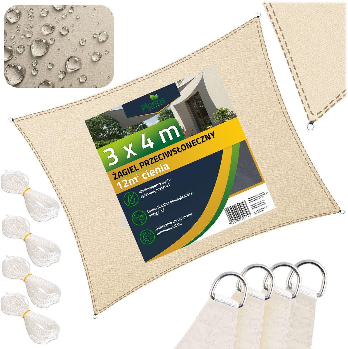 ŻAGIEL PRZECIWSŁONECZNY PROSTOKĄTNY OGRODOWY 180g NA TARAS WODOODPORNY 4x3m Duży żagiel przeciwsłoneczny — 12 m² cienia! Plonos: 488501 Dla tych, którzy kochają spędzać czas na świeżym powietrzu – na tarasie, balkonie, w ogrodzie. Mocny materiał PE dla większej odporności na warunki atmosferyczne. …
