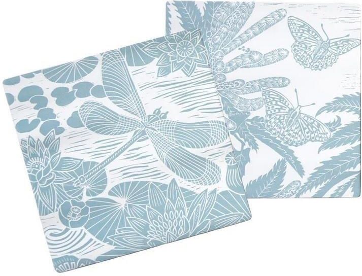 Zestaw dwóch ceramicznych podkładek pod kubek, stworzony przy współpracy Half Moon Bay oraz ilustratorki Kate Heiss, zachwyca odcieniem pudrowego błękitu, motywem inspirowanym motylami. Każda podkładka mierzy 10x11cm, dwie podkładki są zapakowane w eleganckie pudełko, czyniąc z tego zestawu nie tylko praktyczny element codzienny, ale i wyjątkowy prezent. Wykonane ze kamionkowego materiału podkładki idealnie sprawdzą się jako drobny, elegancki upominek lub subtelny dodatek do domowego wnętrza. EAN: 5055453498527