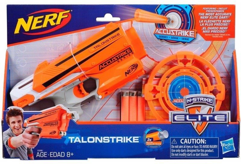 HASBRO NERF N-STRIKE ACCUSTRIKE TALONSTRIKE E2285 Przeżyj emocje i poczuj energie Nerf z nową wyrzutnią Talon Strike. Talon Strike to prosta w obsłudze i skuteczna wyrzutnia Nerf. By wystrzelić wystarczy włożyć strzałkę do lufy pociągnąć za uchwyt na następnie nacisnąć spust. Zasięg wyrzutni jest …