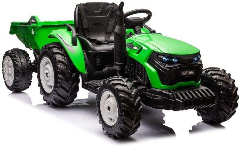 Absolutna nowość: OLBRZYMI TRAKTOR 24 V Z PRZYCZEPĄ I ELEKTRYCZNIE PODNOSZONYM KIPREM SUPER JAKOŚĆ/HC306 Koła EVA, elektrycznie podnoszony kiper pilot, W najbogatszej wersji wyposażenia z dwoma silnikami 2 x 95 W. Model w kolorze zielonym: Opis na podstawie wybranego koloru: Duże siedzenie z 4 …