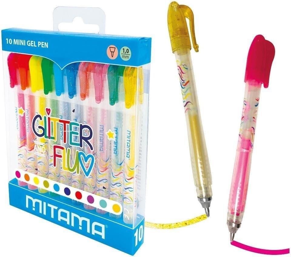 Kolorowy zestaw 10 mini długopisów żelowych to idealna propozycja dla wszystkich, którzy lubią kreatywnie wyrażać siebie - w szkole, w domu czy podczas tworzenia rękodzieła. To doskonały wybór dla dzieci, młodzieży oraz fanów notowania i rysowania z efektem wow! W komplecie znajduje się 5 długopisów w intensywnych, neonowych kolorach oraz 5 z brokatowym wykończeniem, które dodają blasku każdej pracy. Dzięki różnorodności kolorów zestaw sprawdzi się zarówno podczas codziennych notatek, jak i w kreatywnych projektach, takich jak kartki okolicznościowe czy rysunki. Długopisy wyposażone są w gładko piszącą końcówkę o grubości 1 mm z tzw. żelem ślizgowym, który zapewnia płynne i komfortowe pisanie bez przerywania linii. Kompaktowy rozmiar sprawia, że bez problemu zmieszczą się w piórniku, torebce czy plecaku - zawsze pod ręką, gdy pojawi się twórczy pomysł!