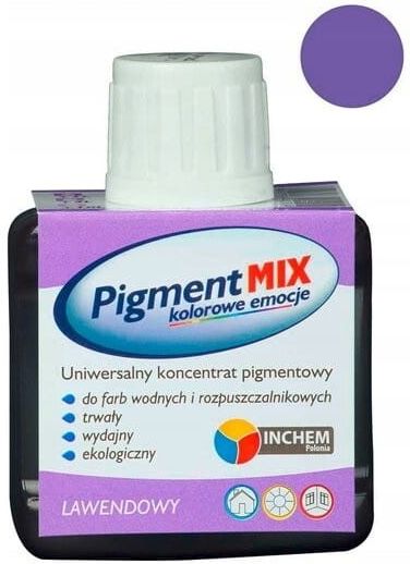 INCHEM Pigment Mix LAWENDOWY Pojemność: 80ml Ilość: 1 szt Uniwersalny koncentrat pigmentowy do farb wodnych i rozpuszczalnikowych trwały wydajny ekologiczny światłoodporny Pigment MIX Uniwersalny koncentrat pigmentowy w postaci wodnej dyspersji pigmentów z dodatkiem środków …
