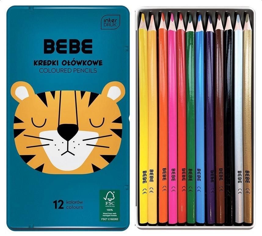 Opis produktu: Kredki ołówkowe 12 kolorów BB Girl INTERDRUK Serdecznie prezentujemy zestaw kolorowych kredek ołówkowych, które charakteryzują się żywymi i intensywnymi barwami. Wśród 12 dostępnych odcieni znajdują się zarówno klasyczne, jak i oryginalne - srebrny i złoty. Każda z kredek posiada trójkątny profil, który zapewnia wygodę i precyzję podczas rysowania. Wyróżniają się one łatwością temperowania oraz są supermiękkie, co przekłada się na niewielką podatność na łamanie. Zestaw kredek jest dostarczany w praktycznym pudełku, które idealnie sprawdzi się do ich przechowywania. Wybranie tego produktu to również dobry wybór dla naszej planety - kredki posiadają certyfikat FSC, co świadczy o trosce producenta o środowisko naturalne. Zapraszamy do zakupu! EAN: 5902277329806
