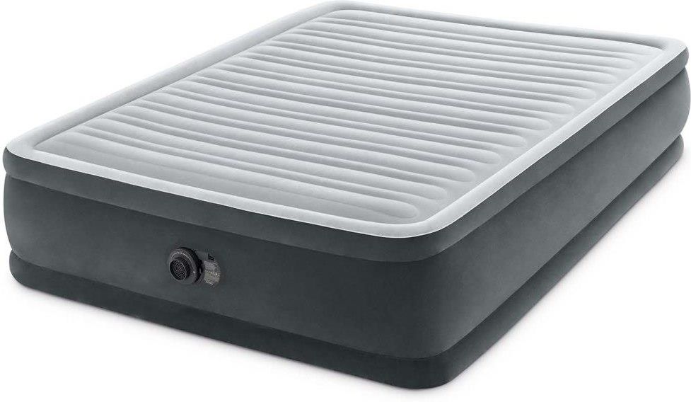 MATERAC INTEX DWUOSOBOWY Z POMPKĄ - INTEX 64414 Idealny sprawdzi się w domu oraz na wyjazdach Materac welurowy INTEX o wymiarach 203x152x46 cm jest idealny dla wypoczynku 2 osób Maksymalne obciążenie: 272 kg Wykonany z mocnego tworzywa PVC, na górze został pokryty przyjemnym w dotyku wodoszczelnym materiałem welurowym Całość w przyjemnej, szarej kolorystyce będzie pasowała do każdego wnętrza. Materac w prosty i szybki sposób napompujesz, dzięki wbudowanej pompce elektrycznej Pompka pozwoli w 3 minuty napompować materac oraz w 1 minutę spuścić powietrze, a następnie złożyć i schować go do szafy MATERAC DMUCHANY 203X152X46 CM Z POMPKĄ Materac welurowy INTEX o wymiarach 203x152x46 cm jest idealny dla wypoczynku 2 osób. Wykonany z mocnego, tworzywa PVC, na górze został pokryty przyjemnym w dotyku wodoszczelnym materiałem welurowym. Całość w przyjemnej, niebiesko-szarej kolorystyce będzie pasowała do każdego wnętrza. Materac w prosty i szybki sposób napompujesz, dzięki wbudowanej pompce elektrycznej. Pompka pozwoli w 3 minuty napompować materac oraz w 1 minutę spuścić powietrze, a następnie złożyć i schować go do szafy. TECHNOLOGIA Dura-Beam Fiber Technologia Dura-Beam Fiber została wymyślona w USA oraz opatentowana przez firmę INTEX. Zapewnia ona wytrzymałość materaca, a jednocześnie bardzo wysoki komfort podczas snu, dzięki zastosowaniuspecjalnych włókien stabilizujących. 1. Materac z technologią Dura-Beam Fiber gwarantuje zdrowy sen. Zapewnia kręgosłupowi anatomiczną pozycję podczas snu, czyli linię poziomą, kiedy leżymy na boku oraz kształt "podwójnego S", gdy wypoczywamy w pozycji na wznak lub na brzuchu. 2. Inne materace pod wpływem twojego ciężaru ciała zapadają się, co przekłada się na płytki sen i dolegliwości z kręgosłupem. SPECYFIKACJA Długość: 203 cm Szerokość: 152 cm Wysokość: 46 cm Materiał PVC, welur Przeznaczenie: dwuosobowy Maksymalne obciążenie: 272 kg Waga: 9,2 kg Wymiar opakowania: 46x41x19 cm Gwarancja: 12 miesięcy Kod produktu: 64414 Producent: Intex