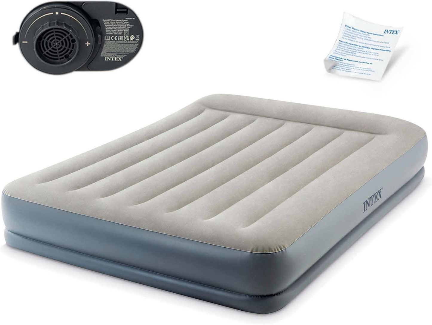 Materac dmuchany z pompką elektryczną, Intex, 203x152x30 cm, szary. Dwuosobowy materac, który doskonale sprawdzi się w każdym wnętrzu. Dzięki specjalnej konstrukcji z wykorzystaniem sprawdzonych technologii gwarantuje wytrzymałość, jak i komfort użytkowania. Najważniejsze cechy materaca dmuchanego: …