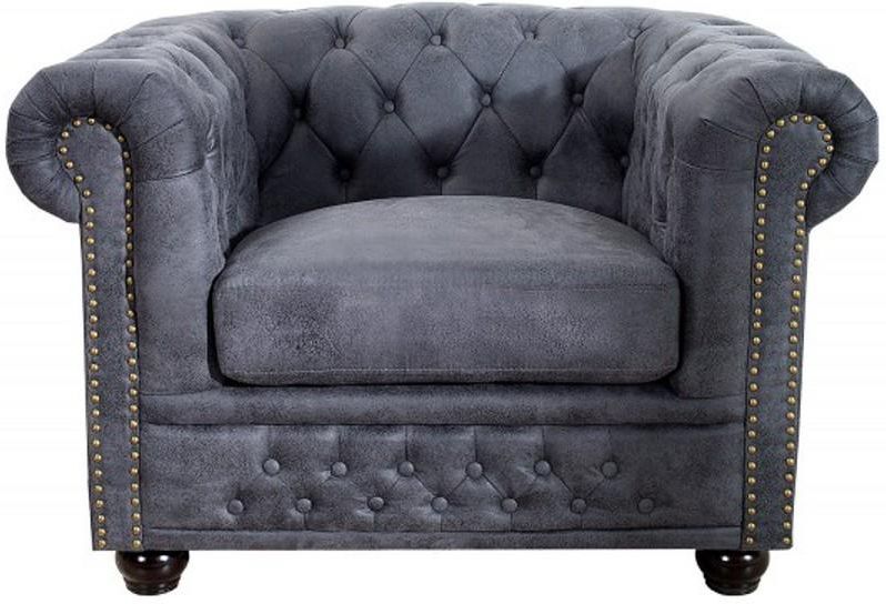 FOTEL CHESTERFIELD II ANTYCZNY SZARY Ten niezwykle elegancki fotel doskonale wkomponuje się zarówno w barokowy, jak i nowoczesny, przestronny salon. Model CHESTERFIELD wyróżnia się głównie zaokrąglonymi charakterystycznymi kształtami oraz starannie wykonanymi dekoracyjnymi pikowaniami, które zdobią oparcie, siedzisko oraz jego podłokietniki. Podstawę zaprojektowano tak aby fotel nabrał wyjątkowego wyglądu, którego solidną drewnianą konstrukcję stanowią rzeźbione nóżki w kolorze ciemnobrązowym podkreślające jednocześnie trwałość i wyrafinowany styl mebla. Całość obito modną szarą mikrofibrą o antycznym wykończeniu, co w połączeniu z dekoracyjnymi pikowaniami nadaje mu wyjątkowej elegancji. Fotel CHESTERFIELD to nie tylko komfortowe siedzisko, ale również stylowy akcent, który wprowadza bez wątpienia luksus i oryginalność do każdego wnętrza. Zaprojektowany został z myślą o osobach ceniących sobie wygodę i wyrafinowany design idealnie pasując do klasycznych jak również barokowych wnętrz, nadając im niezwykłego charakteru oraz stając się tym samym atrakcyjnym dodatkiem, każdego nowoczesnego eleganckiego i wyrafinowanego salonu. W całej serii CHESTERFIELD występują sofy, fotele, ławki, narożniki, pufy, krzesła, leżanki oraz łóżka o różnych podstawach, wymiarach i kolorach - patrz przedmioty powiązane. Invicta Interior to niezawodny dostawca ekskluzywnych designerskich mebli i akcesoriów domowych. Jest to dynamiczna i doświadczona firma z wieloletnimi międzynarodowymi kontaktami i stale poszukującą nowych produktów i innowacyjnych pomysłów. Dojrzała ogólna koncepcja firmy pozwala zaoferować klientom duży wybór nowoczesnych i klasycznych mebli o wyjątkowej jakości w rozsądnych cenach. Invicta Interior monitoruje wszystkie aktualne trendy w branży meblowej, dlatego klienci zawsze otrzymują najnowsze i najwyższej jakości designerskie meble.