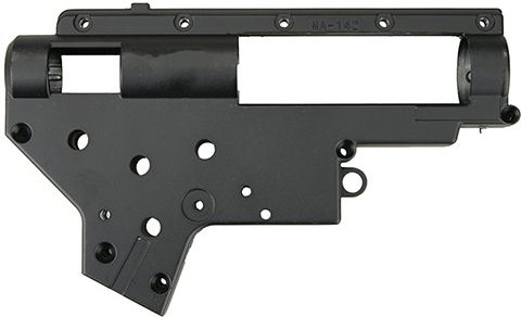 Szkielet gearboxa V2 JG Works 6 mm (JGG-08-002795) Wykonany z metalu szkielet gearboxa v2. Przeznaczony do tuningu replik AEG. Gniazda w szkielecie przystosowane są do łożysk o średnicy 6 mm. Dane techniczne Przeznaczenie: repliki z gearboxem v2 Materiał: metal Waga: 350 g Kolor: czarny Producent: JG Works