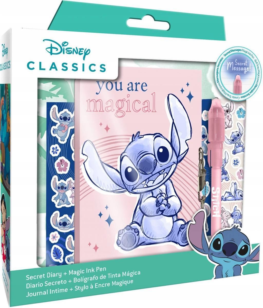 Sekretny pamiętnik z magicznym długopisem Disney Lilo&Stitch 3+ Sekretny pamiętnik z magicznym długopisem Disney You are magical! Zestaw dla dzieci powyżej 3 roku życia Prezentujemy niezwykły pamiętnik z magicznym długopisem Disney Lilo&Stitch. Ten uroczy pamiętnik będzie wyjątkowym prezentem dla Twojego dziecka. Zachwycą się możliwością zapisywania swoich marzeń i sekretnych tajemnic w towarzystwie kultowych postaci z bajki! Nasza oferta zawiera zestaw, który składa się z pamiętnika zapinanego na kłódkę, magicznego długopisu oraz arkuszy kolorowych naklejek. Pamiętnik jest w twardej oprawie, co zapewnia trwałość i ochronę przed uszkodzeniami. Dodatkowo, magiczny długopis z wyjątkowym wkładem do kreślenia tajemniczych wiadomości sprawi, że pisanie stanie się czarującą przygodą. Produkt wykonany jest z wysokiej jakości papieru i PVC, dzięki czemu jest trwały i estetyczny. Całość waży 132 g, a pamiętnik posiada aż 60 stron liniowanych, które są idealne do zapisywania codziennych myśli, wspomnień czy zmartwień. Nie tylko pamiętnik zachwyci Twoje dziecko, ale także arkusze naklejek, które dodatkowo wzbogacą kreatywność i przyjemność z korzystania z tego zestawu. Można je umieścić na każdej stronie pamiętnika, dzięki czemu każda zapisana strona nabierze zupełnie nowego wyrazu. Zestaw pamiętnika z magicznym długopisem Disney Lilo&Stitch to nie tylko doskonały pomysł na prezent, ale również idealne narzędzie do rozwijania wyobraźni i umiejętności pisania u Twojego dziecka. Zaproś ukochane postacie z bajki do swojego świata i ciesz się niezapomnianymi chwilami spędzonymi z pamiętnikiem w ręku! Zamów pamiętnik z magicznym długopisem już teraz i spraw swojemu dziecku wyjątkowy prezent, który będzie go inspirować do kreatywnych zapisów na długie lata! pamiętnik zamykany na kłódkę magiczny długopis! Lilo&Stitch idealny prezent kolorowe naklejki MUST HAVE