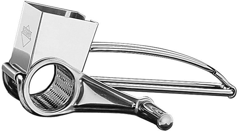 Cechy produktu: długość: 22 cm; materiał: wysokiej jakości stal nierdzewna; stalowa dźwignia nie tylko umożliwi dociśnięcie i starcie nawet najmniejszych kawałków lecz również ochroni nasze dłonie przed skaleczeniem; wygodna korbka wymaga użycia znacznie mniej siły niż przy tradycyjnej tarce.