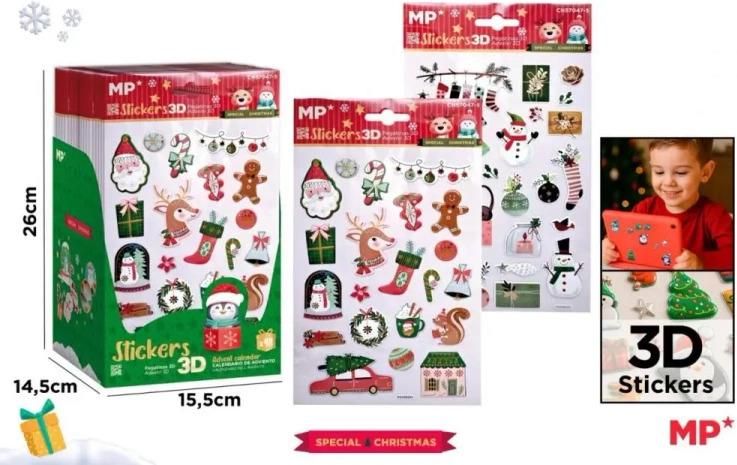 Naklejki świąteczneWymiary: 25x14,5 cm.Naklejki wykonane z PVC, przyjaznego dla środowiska materiału zgodnego z normami Unii Europejskiej, z efektem wypukłości. Drukowane w jasnych kolorach z wyraźnymi motywami. Można je przyklejać do papieru, kart i PP oraz łatwo usuwać z powierzchni pokrytych tworzywem sztucznym. Każde opakowanie zawiera od 2 do 3 wzorów na arkusz display 48 arkuszy(384 arkusze w kartonie)