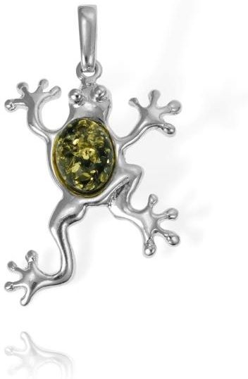Norbisrebro Piękny Srebrny Wisiorek Żaba z Bursztynem ! Maków Podhalański