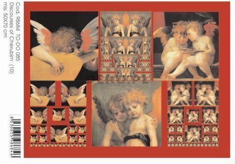 Papier do decoupage B2 50x70 - TO-DO 85 1252 DISCOURSES OF CHERUBIM PAPIER DO DECOUPAGE’U TO-DO SOFT PAPER to jedyny papier do decoupage’u na świecie objęty patentem, idealnie dopasowuje się do kształtów dekorowanych przedmiotów. Jego unikatowe właściwości techniczne oraz wysoka jakość artystyczna czynią z niego produkt jedyny w swoim rodzaju, stworzony specjalnie do decoupage’u. Papier ten jest bardzo trwały i wygodny w użyciu. Nie wymaga moczenia przed klejeniem. oryginalne włoskie wzornictwo odporny na wysokie temperatury trwałe kolory bardzo wytrzymały idealny na każdą powierzchnię: metal, porcelanę, karton, drewno, tkaninę, wosk nie zawiera ligniny ani kwasów właściwość tkaniny (elastyczny pod wpływem wilgoci) cienki Wymiar: 50 x 70 cm