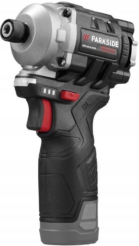 Klucz udarowy Parkside PDSSAP 12 A1 Akumulatorowa zakrętarka udarowa 12 V z serii Parkside Performance Mniejsze zużycie silnika bez szczotek zapewnia długotrwałe, bezawaryjne działanie 4 wstępnie ustawione stopnie momentu obrotowego z wyświetlaczem LED wybranej wartości Cechy i funkcje Klucz udarowy Parkside PDSSAP 12 A1 Zakrętarka udarowa, znana również jako klucz udarowy, to narzędzie które służy do wkręcania i wykręcania śrub oraz nakrętek. Dzięki mechanizmowi udarowemu narzędzie generuje krótkie, mocne impulsy momentu obrotowego, co znacznie ułatwia pracę z mocno dokręconymi lub zardzewiałymi elementami. Wydajny bezszczotkowy silnik (brushless) Wiertarko-wkrętarka Parkside PDSSAP 12 A1 została wyposażona w bezszczotkowy silnik o wysokiej mocy, który umożliwia wyjątkowo wysoką żywotność urządzenia za sprawą niskiego zużycia. Dzięki płynnej regulacji prędkości obrotowej, możesz dostosować narzędzie do różnych materiałów i warunków pracy, zapewniając optymalne wyniki bez uszkodzeń. Ergonomiczny uchwyt softgrip Oprócz doskonałej wydajności, wiertarko-wkrętarka Parkside PDSSAP 12 A1 zapewnia również wygodę użytkowania. Dzięki ergonomicznemu kształtowi i gumowanemu uchwytowi, narzędzie jest komfortowe i pewnie leży w dłoni. Urządzenie kompatybilne ze wszystkimi akumulatorami serii PARKSIDE X 12 V Team. Dostawa nie obejmuje akumulatora i ładowarki. Specyfikacja techniczna Producent Parkside Kolor Czarny Rodzaj zasilania Akumulatorowe Napięcie akumulatora 12 V Pojemność 2,5 Ah Prędkość obrotowa na biegu jałowym 0-3600 min⁻¹ Maks. moment obrotowy 170 Nm Stopnie momentu obrotowego 4 poziomy Liczba uderzeń 0-4000 min⁻¹ Pojemność uchwytu wiertarskiego ¼" Materiał Tworzywo sztuczne Wymiary 182 x 125 x 66 mm Waga 775 g Zawartość zestawu Klucz udarowy Parkside PDSSAP 12 A1 Instrukcja obsługi Walizka transportowa