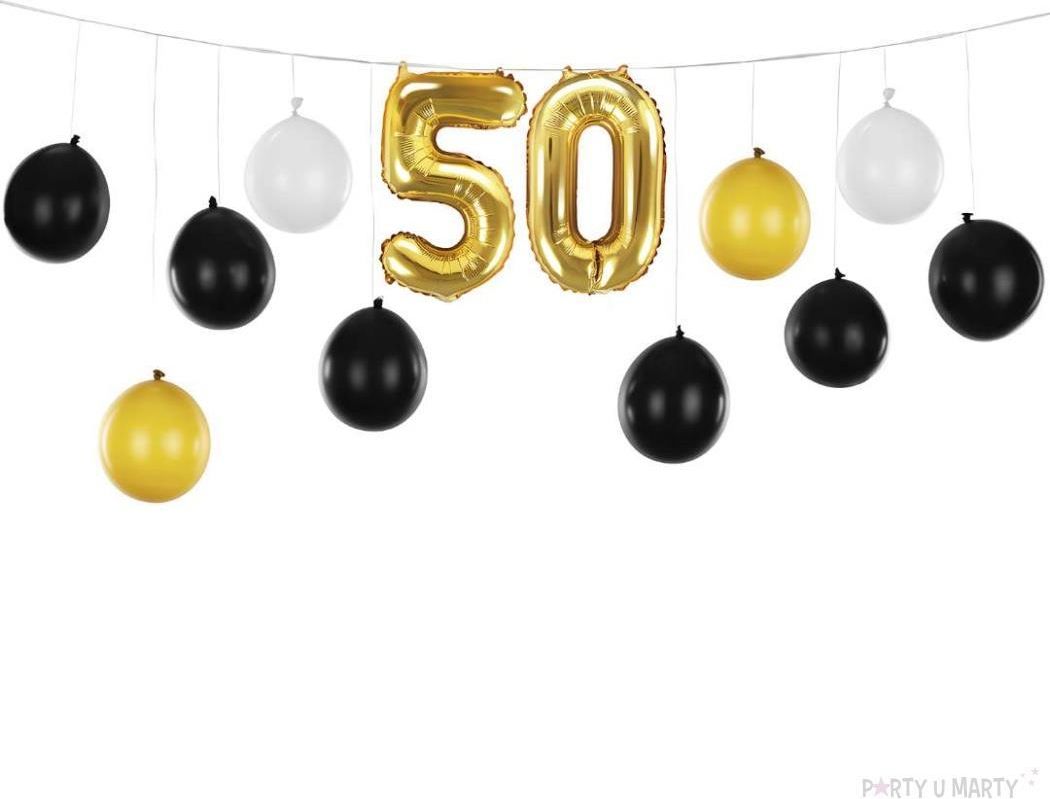 Przygotowujesz przyjęcie z okazji 50 urodzin? Podczas hucznej zabawy z całą pewnością nie może zabraknąć pięknych dekoracji, a elegancka girlanda balonowa na pewno sprawdzi się w tej roli znakomicie! W skład girlandy wchodzi 10 lateksowych balonów w 3 różnych kolorach: 6 czarnych, 2 białe oraz 2 złote. Dodatkowo w komplecie znajdują się także 2 balony foliowe w postaci cyfry 5 oraz 0, które wspólnie tworzą liczbę 50.✅ Balony nie prześwitują, ich barwy są żywe i jednolite na całej powierzchni.✅ Girlandę można złożyć na aż 3 różne sposoby.✅ W zestawie znajduje się papierowa słomka ułatwiająca nadmuchanie balonów i aż 25 metrów wstążki.Jeśli organizujesz imprezę z okazji pięćdziesiątych urodzin i poszukujesz efektownych oraz niebanalnych ozdób, girlanda w stylu glamour na pewno nada się idealnie!▹ Balony cyferki posiadają ok. 35 cm po napompowaniu.▹ Balony lateksowe mają ok. 16 cm. biały,czarny,doklejka 50 urodziny GLAMOUR,liczba 50,metalik,PartyDeco,pastel,różowy,złoty
