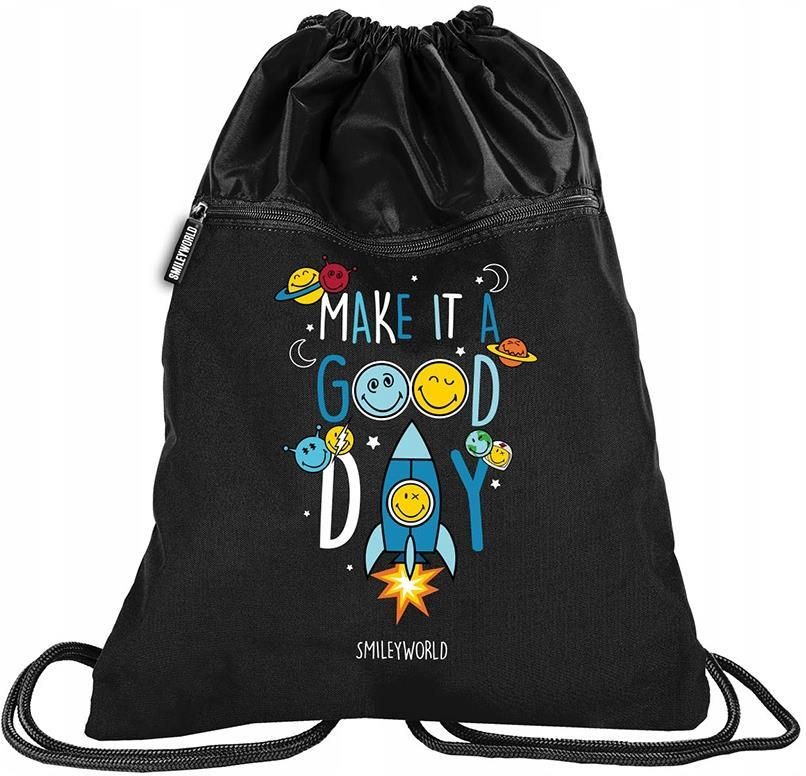 Worek szkolny na buty worko plecak z kieszenią Paso Smiley czarny dla chłopca dziewczynki Worek szkolny na buty premium. Worek zamykany jest ściągaczem, dzięki czemu dostęp do zawartości jest łatwy i szybki. Wyposażony jest w dodatkową kieszeń na zamek, w której można zmieścić kilka niezbędnych drobiazgów. Grube, plecione sznurki ściągające, umożliwiają noszenie worka na plecach lub na ramieniu. Tył worka jest usztywniony i pokryty siatką. Oferujemy atrakcyjne wzornictwo, nie zapominając o tym, by oferować solidne i praktyczne produkty, które sprawdzą się w każdych warunkach. ✅ Waga: 200 gramów ✅ Wymiary: 46×37 cm ✅ Materiał: polyester