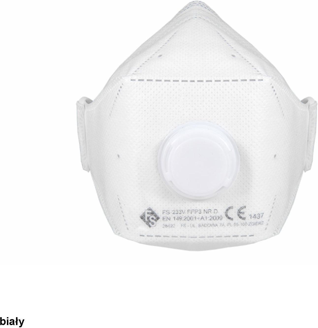 FM FS 233V FFP3 NR maseczka fm fs 233v ffp3 nr d to zaawansowane rozwiązanie w ochronie dróg oddechowych, spełniające normę en 149:2001 + a1:2009. konstrukcja panelowa i mocowanie taśmy nagłowia zapewniają doskonałe dopasowanie do twarzy. wykorzystana włóknina efektywnie filtruje pyły, aerozole i drobne cząstki, zapewniając jednocześnie komfort noszenia. maseczka fm fs 233v ffp3 nr d to niezbędne wyposażenie w sytuacjach wymagających najwyższego stopnia ochrony dróg oddechowych. Charakterystyka: Skład [%]: 100% polipropylen Normy:EN 149:2001+A1:2009, CE Pakowanie:1szt./folia 400 szt./karton Kolory: biały Marka: 4WRK