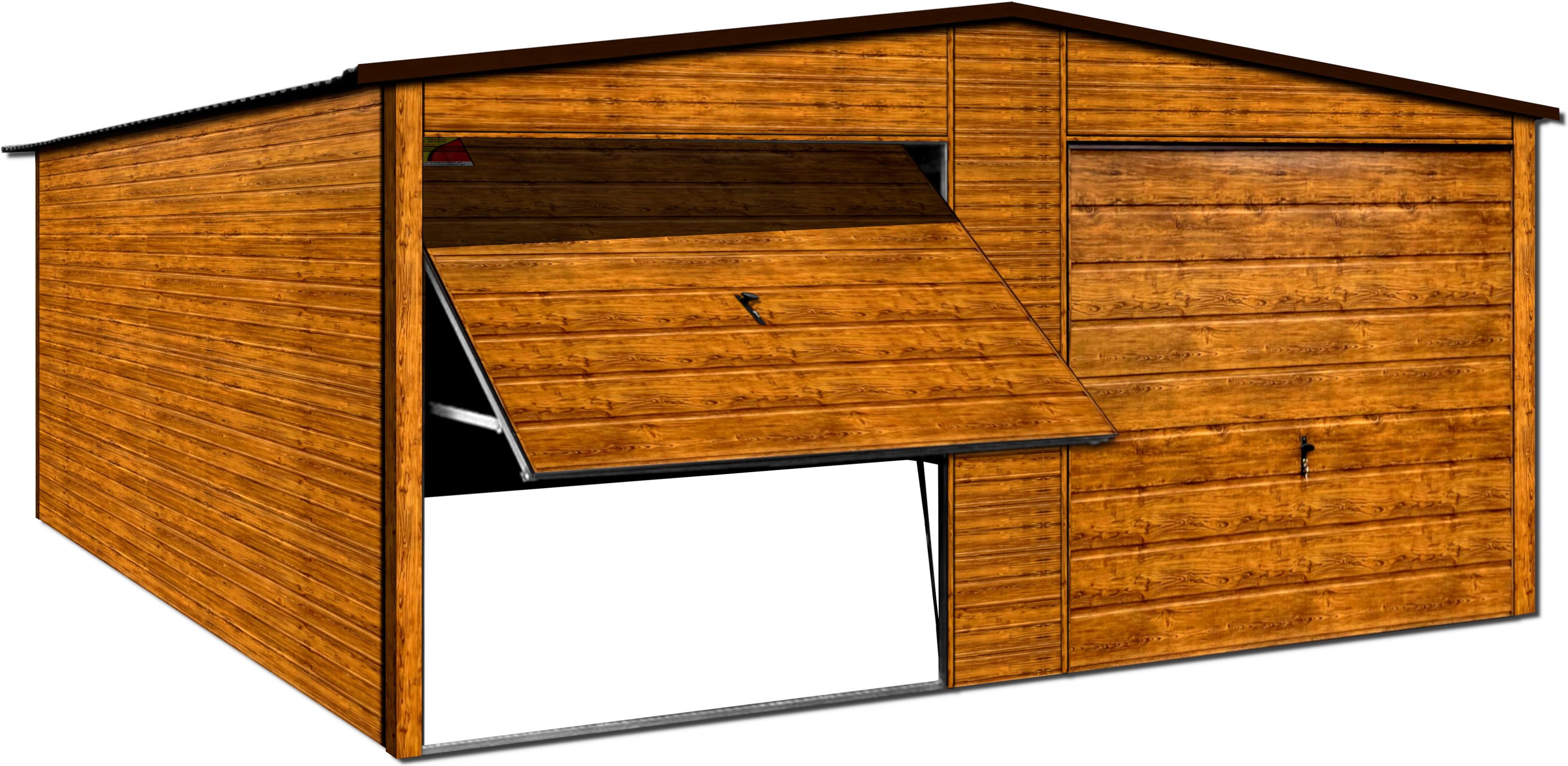 Garaż blaszany 8X9 PREMIUM – Dwuspadowy dach, bramy uchylne, okucia blacharskie, profil zamknięty Garaże blaszane z serii PREMIUM łączą w sobie najwyższą jakość materiałów wraz z niecodziennym designem! Wzmocniona konstrukcja oparta na profilu zamkniętym oraz dbałość o każdy, nawet najmniejszy detal gwarantują bezawaryjne użytkowanie przez długie lata! Jako zaufany producent garaży blaszanych gwarantujemy możliwość zmiany konfiguracji wybranego produktu - dopasowanie wymiarów konstrukcji do własnych potrzeb, dobór indywidualnej wersji kolorystycznej i wiele, wiele więcej! Parametry garażu: szerokość 8m długość 9m dwuspadowy dach wysokość w szczycie 2,75m wysokość ściany bocznej 2,13m dwie bramy uchylne w panelu poziomym szerokim – kolor drewnopodobny SOSNA szerokość bramy 3m wysokość bramy 2m na ścianach blacha trapezowa w panelu poziomym wąskim – kolor drewnopodobny SOSNA okucia blacharskie narożników – kolor drewnopodobny SOSNA dach pokryty blachą w kolorze BRĄZ MAT okucia dachu w kolorze BRĄZ MAT nity pod kolor blachy konstrukcja oparta na profilu zamkniętym Bramy - panel poziomy szeroki, ręcznie uchylane do góry. Po obu stronach bram w dolnych rogach zamontowano sprężyny wspomagające podnoszenie bram. Ściany - skręcane śrubami na rogach garażu. Spawane profile w formie krzyża zapewniają stabilność i wytrzymałość konstrukcji garażu. Konstrukcja - wykonana jest przede wszystkim z profili zamkniętych, z dodatkiem kątowników i ceowników. Całość jest bardzo wytrzymała i solidna. Wyposażenie dodatkowe (nieodpłatne lub odpłatne): dach ze spadem na: przód, lewo, prawo, tył, brama dwuskrzydłowa, dodatkowe małe drzwi, otwory okienne na wymiar, możliwość zamontowania okien PCV, możliwość zmiany wymiarów garażu: szerokość, długość, wysokość, kotwiczenie do podłoża, orynnowanie, możliwość zmiany kolorystyki, blachodachówka, dobudowana wiata, filc. * WAŻNE INFORMACJE PRZED ZAKUPEM * Kolorystyka garażu – przy składaniu zamówienia prosimy o zawarcie informacji odnośnie wybranej kolorystyki garażu. Pełną paletę dostępnych kolorów można znaleźć w zakładce KOLORY. Zaprezentowane kolory mają charakter podglądowy – w rzeczywistości mogą się one nieznacznie różnić, co uwarunkowane jest indywidualnymi ustawieniami ekranu urządzenia mobilnego/komputera. Montaż - nasza firma oferuje darmowy montaż na wcześniej przygotowanym podłożu. Szczegółowe informacje i wskazówki odnośnie prawidłowego przygotowania podłoża znajdziesz w zakładce PORADNIK.