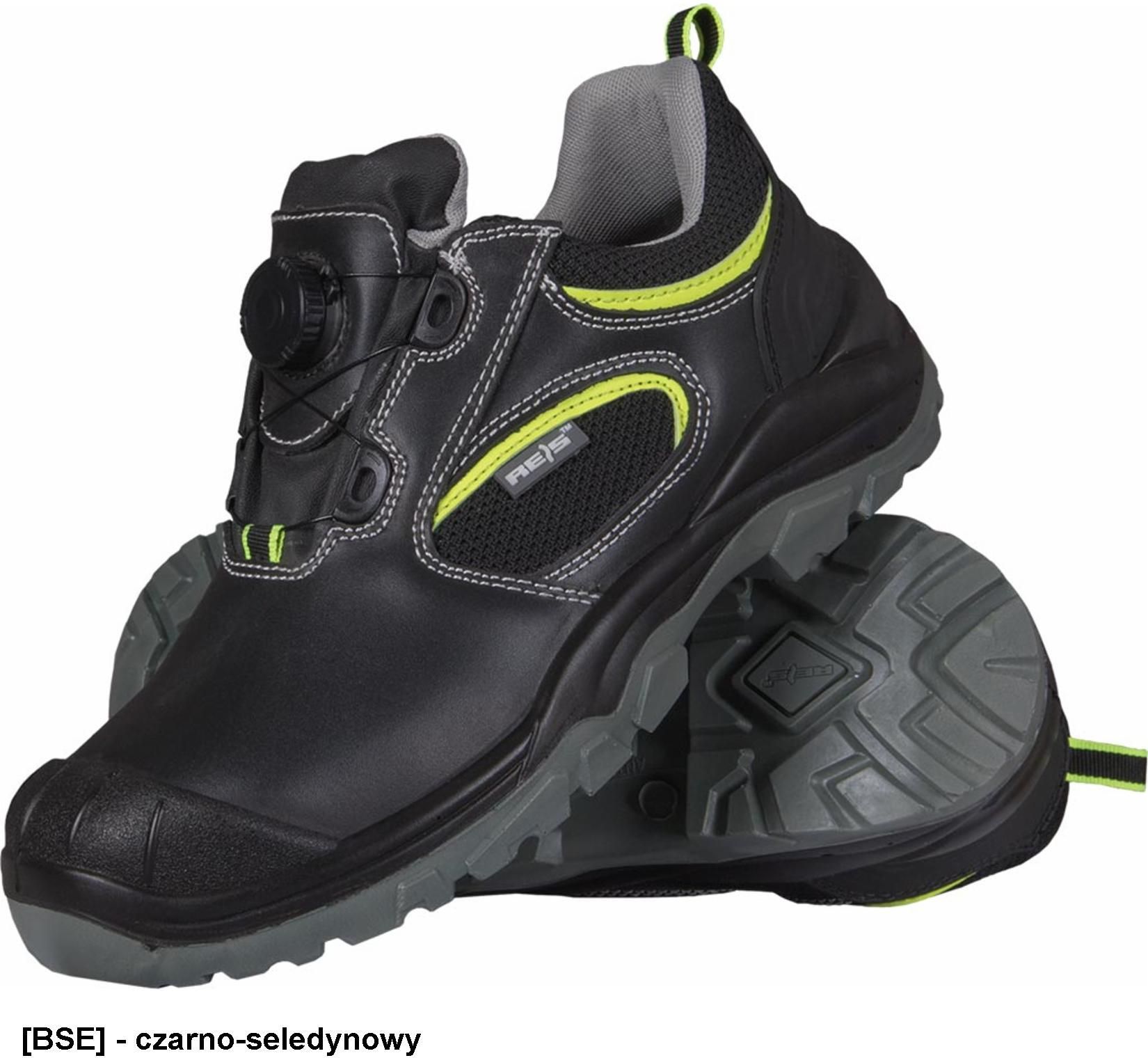 R.E.I.S. Brgru S1 Skórzane Półbuty Bezpieczne Podnosek Szybkie "Sznurowanie" Pokrętło Podeszwa Olejoodporna Poliuretan Maków Podhalański