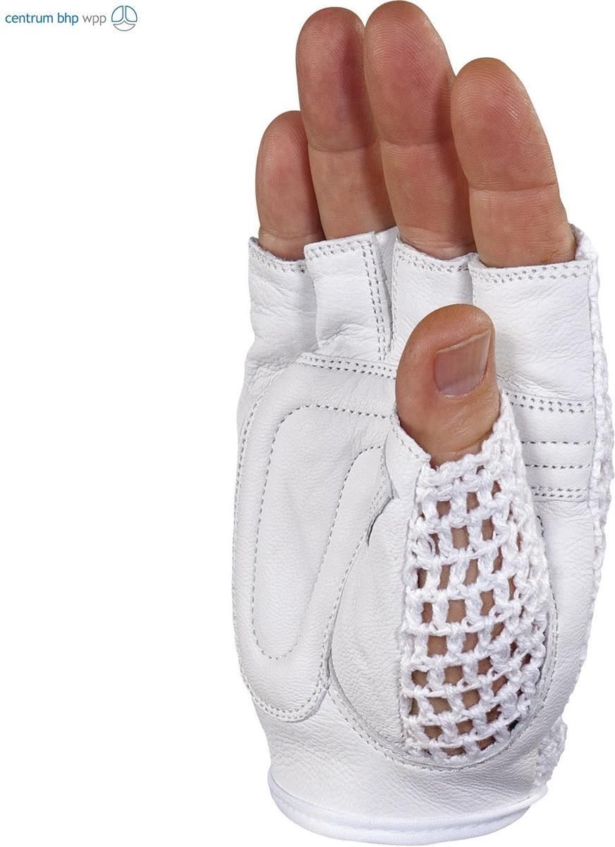 50MAC RĘKAWICA BEZ PALCÓW ZE SKÓRY JAGNIĘCEJ, STRONA GRZBIETOWA DZIANA AŻUROWA Z BAWEŁNY. OPIS TECHNICZNY : Rękawica ze skóry licowej jagnięcej, trwałe i wygodne dla rowerzysty, wzmocnienie na stronie chwytnej dłoni, strona grzbietowa dziana ażurowa z bawełny. MATERIAŁY : Skóra licowa jagnięca o grubości 0,6 i 0,7 mm Rozmiary : 07, 08, 09, 10, 11 Kolory : Szary Symbol : 50MAC-->Przykłady użytkowania Transport różny.Prace w budownictwie. Układanie wełny szklanej lub mineralnej. Służby utrzymania ruchu i remontowe.89/686/CEE
