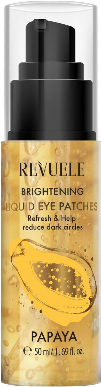REVUELE ROZŚWIETLAJĄCE PŁYTKI POD OCZY PAPAYA to innowacyjny produkt, który odświeża i pomaga zredukować widoczność cieni pod oczami. Lekka żelowa formuła wzbogacona ekstraktem z papai wygładza i widocznie rozświetla skórę. Kofeina niweluje zmęczenie, tonizując i „budząc skórę”. Sposób użycia: Delikatnie nałożyć 2 porcje produktu na suchą, czystą skórę w okolicy każdego oka 1-2 razy w tygodniu. Pozostaw na 10-15 minut i delikatnie spłucz wodą. Unikaj kontaktu z oczami! W przypadku kontaktu z oczami natychmiast przemyć dużą ilością wody. Uwaga: możliwa jest indywidualna nietolerancja któregokolwiek ze składników. Przed pierwszym użyciem zaleca się wykonanie testu punktowego na czułość.