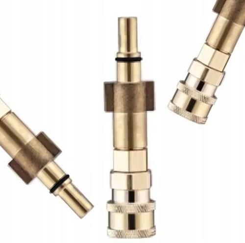 Adapter / przejściówka do myjki ciśnieniowej Bosch nowy typ/ Black&Decker / Makita / Stanley na szybkozłączke (QC) 1/4" Uniwersalność: idealnie nadaje się do myjek ciśnieniowych, umożliwiając łatwe podłączenie do różnych akcesoriów i szybkozłączy. Kompatybilność: Może być stosowany zarówno w myjkach spalinowych, jak i elektrycznych, w miejscu mocowania dyszy ciśnieniowej. Solidna konstrukcja: Wykonany z wysokiej jakości materiałów, co gwarantuje długą żywotność i odporność na zużycie nawet przy intensywnym użytkowaniu. Adapter zapewnia pewne i stabilne połączenie, minimalizując ryzyko przecieków. Łatwy montaż: Prosta konstrukcja adaptera pozwala na szybki i łatwy montaż bez potrzeby użycia specjalistycznych narzędzi, co czyni go wygodnym w codziennym użytkowaniu. Specyfikacja: Gwint: Bayonet Trzpień: 12 mm Rodzaj połączenia: Szybkozłącze 1/4" Max ciśnienie: 160 bar Przepływ max: 10l Max temperatura: 60°C Kompatybilność złącza: Bosch Stary Typ AR Black&Decker Interskol MacAllister Makita Ryobi Stanley