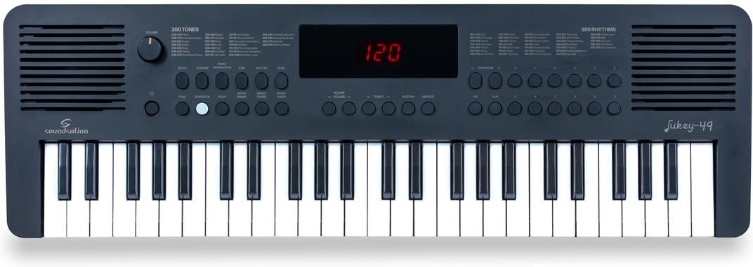 Soundsation Jukey 49 - keyboard dla początkujących Kompaktowy keyboard JUKEY-49 z 49 klawiszami to idealne rozwiązanie dla początkujących muzyków, oferujący szeroki wachlarz brzmień i rytmów. Najważniejsze korzyści ✔️ Szeroki wybór brzmień — Umożliwia odkrywanie różnych gatunków muzycznych. ✔️ …