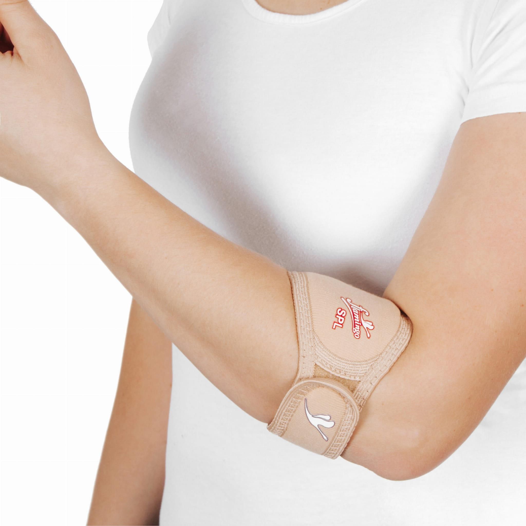 Stabilizator ochraniacz łokcia orteza z rzepem Problemy ze stawem łokciowym niestety nie należą do rzadkości. Najczęstszą ich przyczyną są nadwyrężenia spowodowane fizyczną pracą zawodową obciążającą rękę w tym miejscu lub aktywne uprawianie sportu. Powodem bólu łokcia może być także uraz, np.: stłuczenie, zwichnięcie, skręcenie lub złamanie. Bardzo ważne jest to, aby w takim przypadku jak najszybciej podjąć kompleksową terapię. Zaniedbanie tej kwestii może skutkować bowiem ciągłym nawracaniem dolegliwości, a nawet obniżeniem sprawności ręki. Ochraniacz łokcia tenisisty zapewnia równomierną kompresję i ulgę w bólu Produkt nadaje się do łagodzenia bólu związanego z kontuzjami sportowymi, artretyzmem i starością ABY DOBRAĆ ROZMIAR NALEŻY ZMIERZYĆ OBWÓD ŁOKCIA PRZY WYPROSTOWANEJ RĘCE. ROZMIARY: UNIWERSALNY 20-27,5 cm SPECJALNY 27,5-35,5 cm
