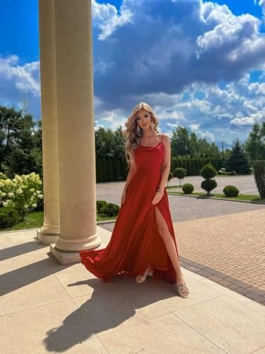 Elegancka długa sukienka o oryginalnym kroju z rozcięciem eksponującym nogę. Góra sukienki dobrze dopasowana z usztywnianą, wbudowaną miseczką i regulowanymi cieńkimi ramiączkami. Nietuzinkowy przód z efektem wody na biuście oraz zakładki przy rozcięciu . Tył sukienki zapinany na zamek. Sukienka uszyta jest z delikatnej, zwiewnej lekko satynowej tkaniny. Kreacja idealnie sprawdzi się na wesele dla gościa lub druhny a także na inne ważne okazje. Sukienka szyta w rozmiarach od 34-38 Jeżeli nie ma potrzebnego rozmiaru prosimy o kontakt Tabela wymiarów danego modelu sukienki (wymiary podane w centymetrach) rozmiar biust pas 34 78-86 68-72 36 82-94 72-78 38 86-96 78-84 Ponieważ sukienki szyte są na dwu szwalniach bardzo prosimy przed zakupem o kontakt telefoniczny lub mailowy z podaniem swoich wymiarów. W ten sposób dużo łatwiej i bezpieczniej będzie dobrać odpowiedni rozmiar lub odpowiednią sztukę ze względu na delikatne różnice w wymiarach. Lepiej dobrze ustalić niż wymieniać :)