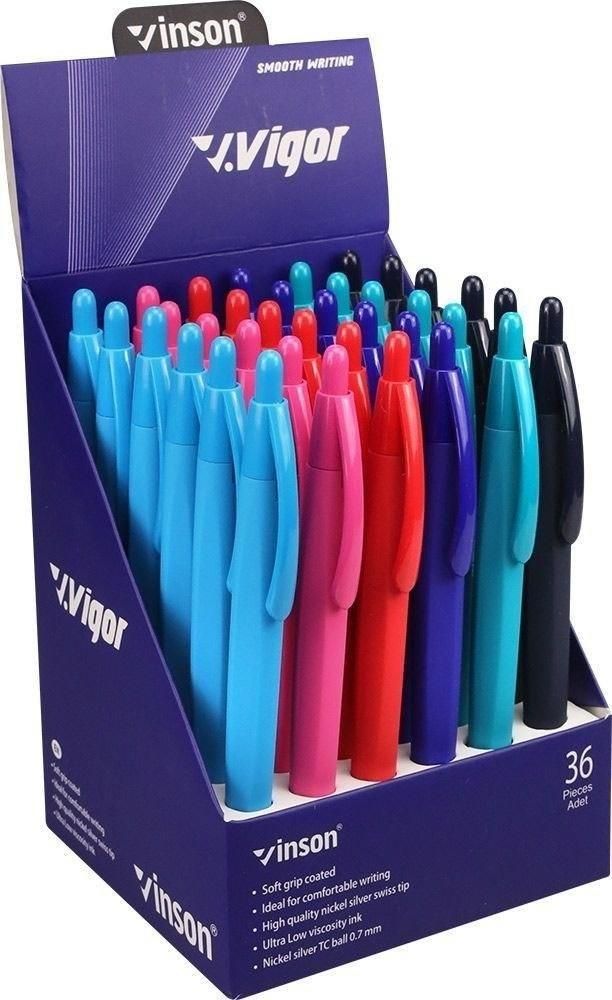 Długopis automatyczny Vigor G2 0,7mm niebieski wkład 6 kolorów obudowy 36 sztuk w opakowaniu