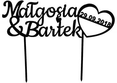 Topper z imionami i datą ślubu Pary Młodej idealny na tort i jako dekoracja. Wymiary: Wysokość: 20 cm Szerokość: 25 cm Grubość: 3 mm Dostępne kolory: Surowy(drewno), Biały, Czarny, Brązowy, Różowy, Błękitny, Szary,Niebieski, CzerwonyBrokaty: srebrny, złoty W polu (Malowanie) proszę wybrać czy ma być malowane z jednej strony czy z dwóch stron. W polu (tekst) proszę podać imiona i datę.
