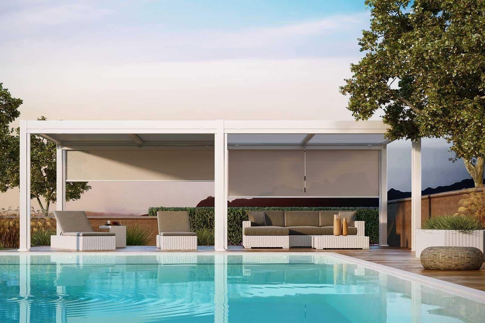 Perara to gotowa pergola na Twój taras. Wykonana jest z wysokiej jakości aluminium, co gwarantuje trwałość i solidność konstrukcji. Regulowane listwy górne umożliwiają wybór siedzenia w słońcu lub w cieniu. Woda deszczowa odprowadzana jest poprzez nogi konstrukcji - to praktyczne i sprytne rozwiązanie. ✓ Konstrukcja aluminiowa o bardzo długiej żywotności ✓ Maksymalne obciążenie nawet do 80 kg / m2 ✓ Pergola łatwa do zbudowania za pomocą instrukcji montażu ✓ Zintegrowana rynna dachowa ✓ Uchylne listwy górne ✓ Pergola w kolorze białym Wymiary konstrukcji: Długość: 720 cm Szerokość: 360 cm Wysokość: 250 cm Zabezpiecz się przed nadmiernym nasłonecznieniem, deszczem, wiatrem lub zimnem w szczególnie stylowy sposób dzięki aluminiowej pergoli PERARA z odchylanymi listwami górnymi. Ta wolnostojąca pergola tarasowa ma płaski, odporny na słońce i wodę dach, który odprowadzi wodę po nogach konstrukcji. Pergola PERARA zapewnia optymalny komfort życia przez cały rok, niezależnie od pogody. PERARA jest całkowicie wolnostojąca i ma wymiary 720 x 360 i około 250cm wysokości. Pergola posiada sześć nóg/filarów po 12x12 cm, które można przymocować niewidocznie do podłoża. Uchylne listwy górne są łatwe w obsłudze. Gdy listwy są całkowicie zamknięte, dach staje się wodoodporny. Woda jest odprowadzana przez system rynnowy zintegrowany z nogami konstrukcji, pozostawiając suchy obszar bezpośrednio pod pergolą. Listwy są przystosowane do odprowadzania wody na bok. Ze względu na zastosowane materiały i konstrukcję, konserwacja nie jest konieczna. Katalog Zadaszenia 2021 Kliknij i pobierz Ten produkt możesz zamówić przez telefon