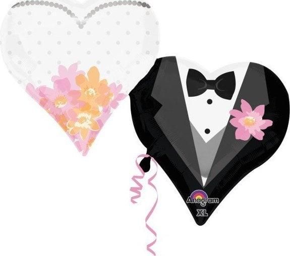 Wedding Couple 30" - 76 cm - Anagram /PACK Balony foliowe serca "Para Młoda" 76 cm Wyjątkowa dekoracja na ślub i wesele! Balony foliowe w kształcie serc z motywem **panny młodej (suknia) i pana młodego (garnitur)** to idealny dodatek do uroczystości zaślubin. Doskonale sprawdzą się jako ozdoba sali …
