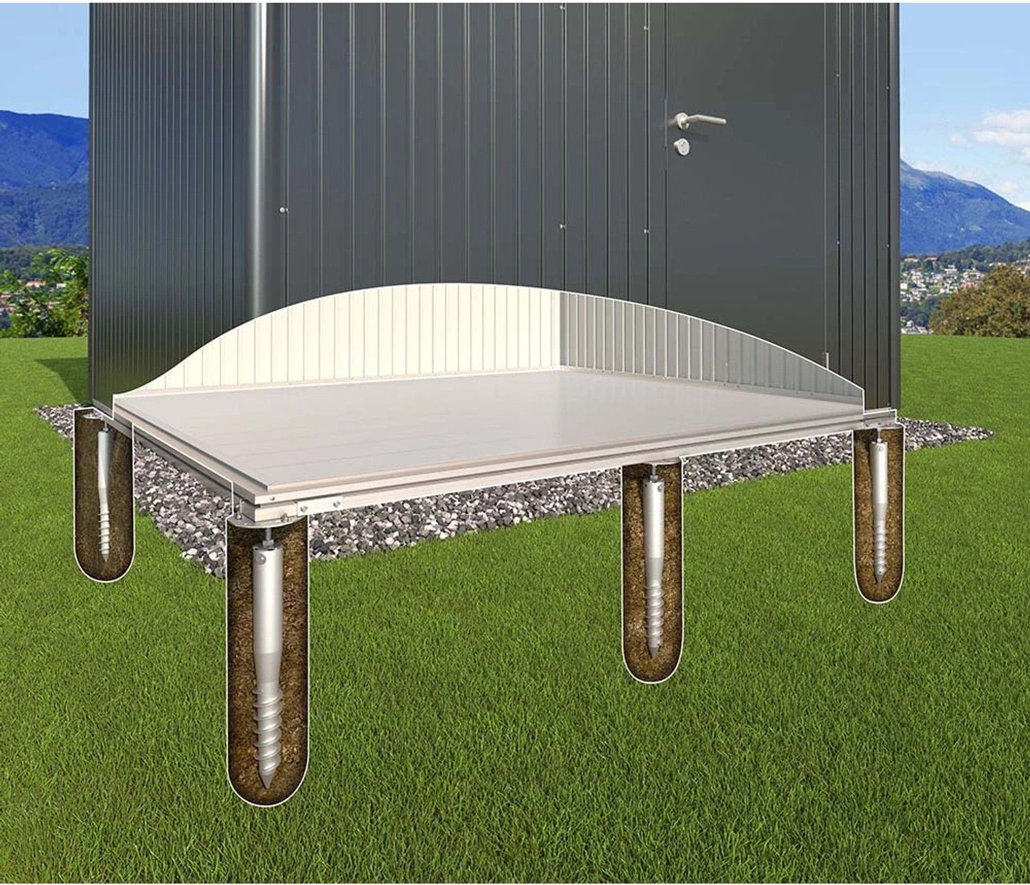 Wysokiej jakości fundament SmartBase Plus zapewnia altanie ogrodowej Biohort niezbędną stabilność i odporność na burze, nawet na nierównym podłożu o nachyleniu do 15 cm. Ten innowacyjny fundament składa się z wysokiej jakości aluminiowych desek/ram, podpartych solidnymi, ocynkowanymi ogniowo śrubami gruntowymi. Aluminiowe deski tworzą trwałą, nośną podłogę dla altanki. Zintegrowana bariera wodna zapewnia optymalny drenaż, zapobiegając przedostawaniu się wody do wnętrza altanki. Oddzielna rama podstawy i płyta podłogowa nie są już potrzebne. Nadaje się do wszystkich rodzajów podłoża nośnego. Minimalny wykop, brak żwiru, zabezpieczenie przed mrozem, brak betonowania, brak bałaganu. Optymalne wypoziomowanie, absolutna odporność na burze (150 km/h, skala Beauforta 12). W zestawie: śruby gruntowe, aluminiowe deski, rama, zastrzały, wszystkie niezbędne materiały montażowe oraz narzędzie ręczne do montażu śrub gruntowych.