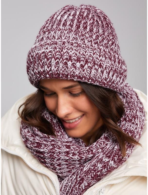Burgundowo-szara czapka i szalik Malbork