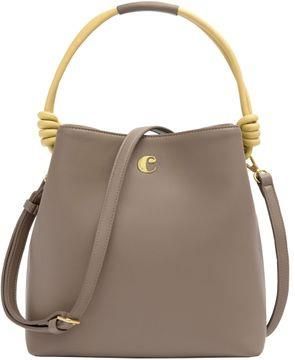 Torebka Apolline w kolorze taupe jest wykonana z miękkiej, matowej, wysokiej jakości skóry wegańskiej (PU) i ma kultowe logo `C` z przodu, z lekkimi pozłacanymi wykończeniami, w tym logo podpisu. Żywy żółty uchwyt w kształcie węzła dodaje wesołego koloru, a złoty podpis TPU Cacharel z tyłu zapewnia subtelny, ale luksusowy akcent. Wersja taupe łączy w sobie zarówno elegancję, jak i praktyczność, dzięki czemu jest wszechstronnym i stylowym dodatkiem na każdą okazję. Linia jest miękka, kolorowa i zabawna, dodając żywej energii do każdego stroju.