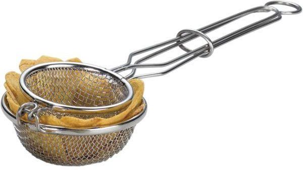 GSD - Sitko do formowania ptasiego gniazda Łyżka z siatki ze stali nierdzewnej przeznaczona do pieczenia ziemniaczanych gniazd. Solidne wykonanie zapewnia powtarzalność wymiarów. Można myć w zmywarce.