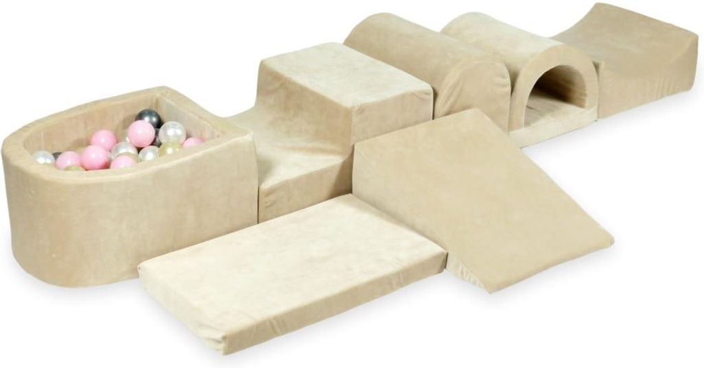 Największy piankowy plac zabaw z basenem micro Velvet soft beżowy + 100 piłek (jasny róż, jasny złoty, perła, srebrne) Piankowy plac zabaw lub jak inaczej nazywany jest - piankowy tor przeszkód to niezwykła frajda dla Twojego malucha. Właściwości: Pozytywnie wpływa na rozwój dziecka Idealnie nadaje się do zabawy (Tylko pod opieką osoby dorosłej) Niezwykła zabawa od pierwszych miesięcy życia Świetnie nadaje się na prezent! Dane techniczne: W całości wykonany z pianki Pokryty pokrowcem wykonanym z przyjemnej w dotyku tkaniny [95% bawełna, 5% elastan] Posiada certyfikat CE oraz certyfikat EN-71 Pokrowiec na zamek, zdejmowany do prania (prać w temperaturze 30 stopni Celsjusza) Produkty pakujemy próżniowo, aby zredukować wielkość paczek. (Po rozpakowaniu produkty potrzebują około 7 dni na osiągnięcie właściwego kształtu) Wymiary elementów (szerokość / długość / wysokość): Schodek: 45/60/30 cm Kołyska: 45/50/30 cm Klin: 45/60/20 cm Górka: 45/30/35 cm Basen micro: 45/60/30 cm Plastikowe piłeczki do suchego basenu polski producent wykonane z nietoksycznego materiału, bezpieczne dla dzieci bardzo elastyczne, nie ulegają odkształceniu posiadają certyfikat CE średnica piłeczek 7 cm Robimy krok w stronę ekologii! Jako jedni z nielicznych producentów zabawek piankowych wykorzystujemy piankę o podwyższonej gęstości. Dzięki temu, produkty z niej wykonane będą znacznie trwalsze, a co za tym idzie - będą dłużej służyły swoim małym właścicielom! Produkty pakujemy próżniowo, redukujemy dzięki temu wielkość paczek, a to z kolei bezpośrednio przekłada się na wiele korzyści. Dzięki zmniejszaniu wymiarów paczek, zredukowaliśmy również ilość ciężarówek potrzebnych do ich przewiezienia. Do jednej dziennie! Wszystkie kroki, które podjęliśmy przekładają się na mniejsze spalanie paliwa oraz mniejsze zanieczyszczanie środowiska. Uwaga! Kolory przedmiotów na zdjęciach mogą nieznacznie różnić się od rzeczywistych ze względu na różne ustawienia komputera i monitora.