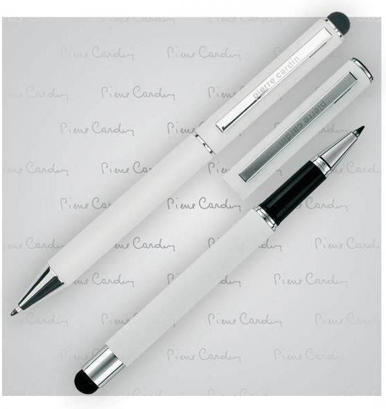 Luksusowy zestaw piśmienny składający się z długopisu i pióra kulkowego wykonanych z aluminium, z przyjemną w dotyku powierzchnią soft touch i srebrnymi detalami. Długopis wyposażony w niebieski wkład 0,7 mm, natomiast pióro w niemiecki wkład Schneider w kolorze niebieskim 0,5 mm. Obydwa elementy posiadają funkcję touch pen. Całość zapakowana w eleganckie etui prezentowe z certyfikatem autentycznośći Pierre Cardin.