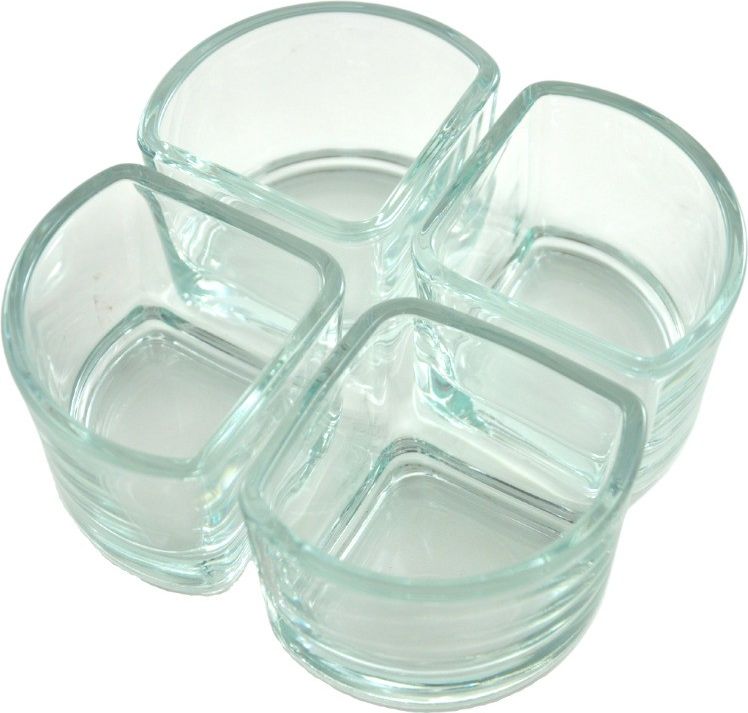 Zestaw szklanych mini pojemników uatrakcyjni nie jedno przyjęcie. Jest bardzo praktyczny, uniwersalny i niedrogi. Został wykonany z transparentnego, grubego szkła. Mają wielorakie zastosowanie: pojemniki na przekąski, salaterki na dipy, salaterki na różne surówki, pojemniki na drobiazgi, pojemniki na słodycze, itp. Nie zawiera materiałów szkodliwych takich jak: ołów, kobalt, kadm, itp. Przeznaczony do kontaktu z żywnością. Może być myty w zmywarce przy użyciu programu przeznaczonego do mycia szkła. Salaterek nie należy poddawać nagłym różnicom temperatur. Gwałtowne ochłodzenie lub ogrzanie może spowodować, że szkło pęknie. Zestaw składa się z czterech mini salaterek o objętości 120 ml każda. Wymiary pojedynczej salaterki: Długość - 71 mm Szerokość - 86 mm Wysokość - 60 mm Pojemność - 120 ml Wymiary zestawu 4 salaterek: Szerokość - 142 mm, Średnica - 160 mm Wysokość - 60 mm Pojemność - 4 x120 ml