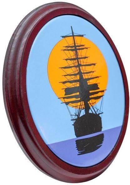 Piękny żaglowiec na tle zachodzącego słońca - szyld metalowy emaliowan, oprawa drewniana Wykonane techniką szyldu emaliowanego, dokładnie taką samą jak tablice z nazwami ulic czy urzędów. Technika niezwykle odporna na działanie warunków atmosferycznych. Emalierstwo jest jedną z najstarszych i …