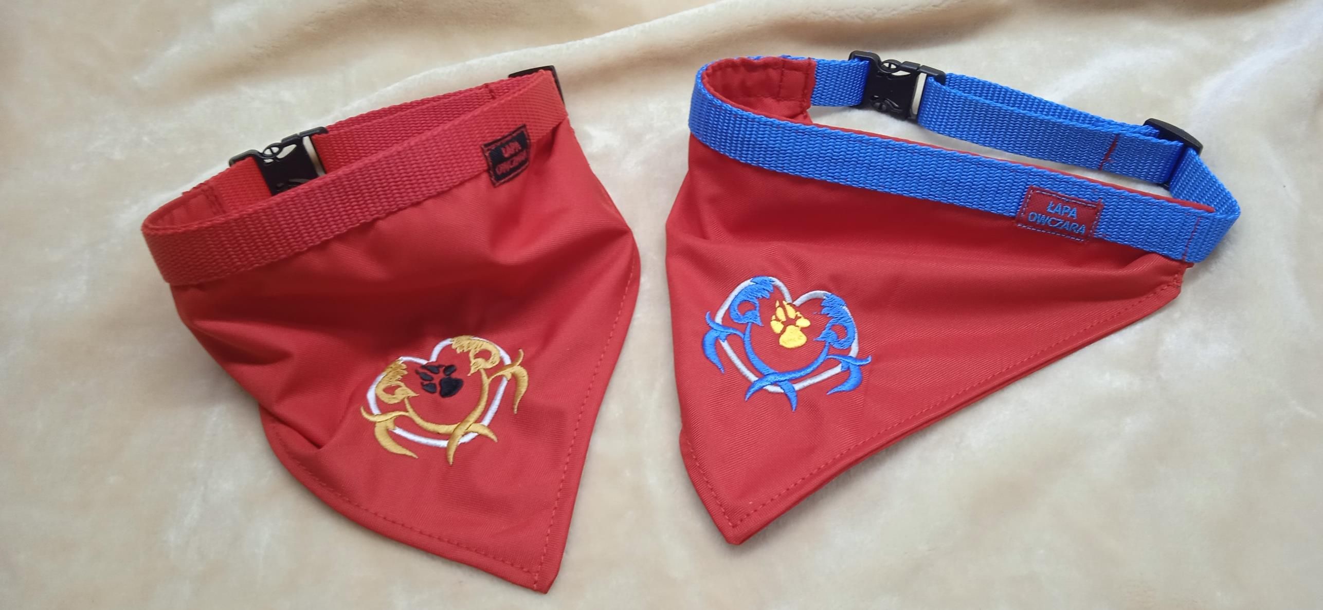 DOGOTERAPIA bandanka z haftem wg zamówieniaNiech Twój Pupil się wyróżnia nasze bandanki na pewno to ułatwią Zapinana na klamerkę z regulacją z miękkiej wodoodpornej tkaniny Cena ostateczna uzależniona od rodzaju i wielkości haftu Zapraszam do kontaktu Wyroby ,,personalizowane" nie podlegają zwrotowi