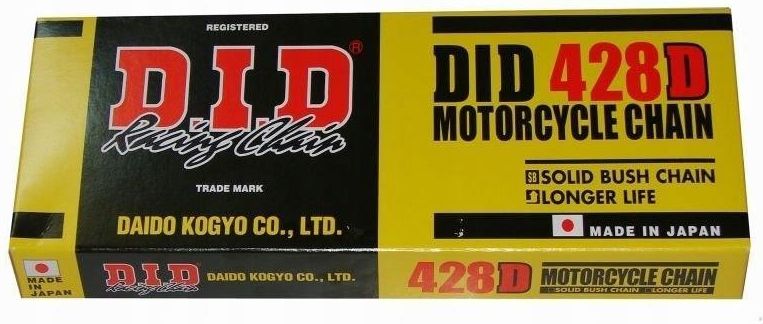 ŁAŃCUCH NAPĘDOWY DID428D-114 DID 428D to - nowe ulepszone łańcuchy, które zastępują 428 STANDARD. Bez O-ringowy, w komplecie zapinka Zastosowanie tulejki łańcucha bez szwu sprawia, że odporność na zużycie eksploatacyjne wzrasta od 20% do 50%. Montowany fabrycznie przez wiodących producentów …